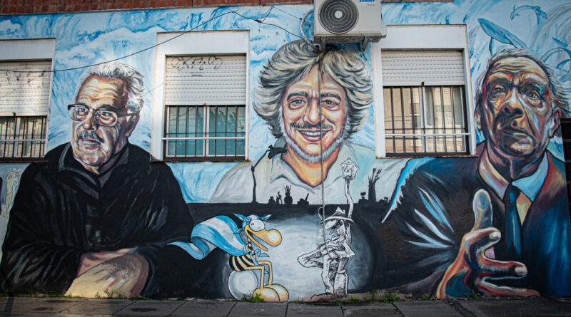 Además, en paralelo, se llevaron adelante tareas de restauración de los retratos de Caloi, Soldi y Borges ubicados sobre la avenida Espora.
